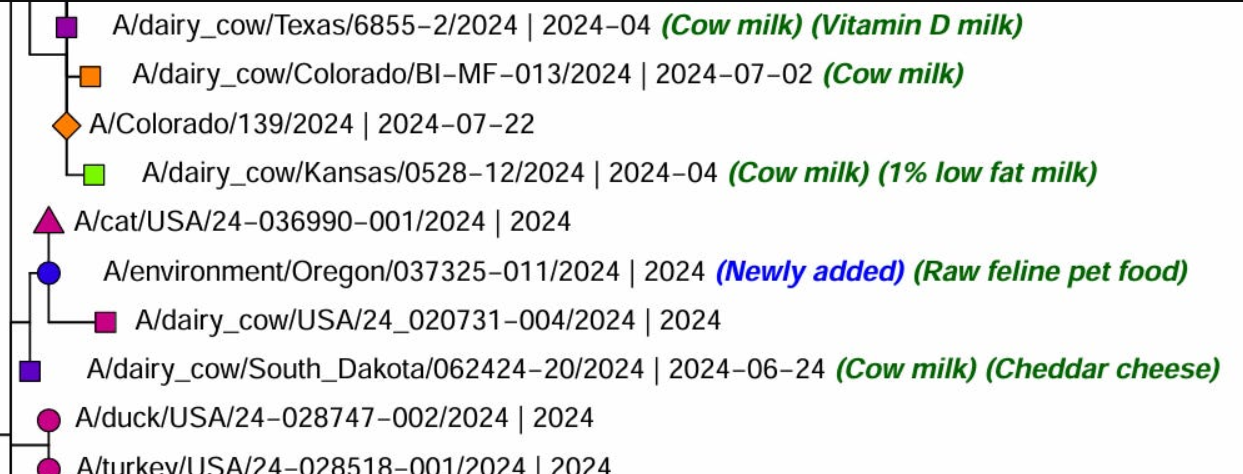 On its website, Northwest Naturals makes the following statement regarding sourcing for turkey in its pet products: It’s quite interesting that a B3.13 positive turkey product should reportedly originate from either Iowa or Pennsylvania, where B3.13 dairy infections have not been reported recently (Iowa) or ever (PA). This is a frozen product, so it is possible that this turkey was produced in Iowa back in the time frame when HPAI H5N1 b2.3.4.4B3.13 genotype was circulating in Iowa dairy herds and turkey flocks late last summer, then frozen for later distribution. I assume someone has been or will be tracing back this product through the supply chain to uncover the source herd or area of the infected product.